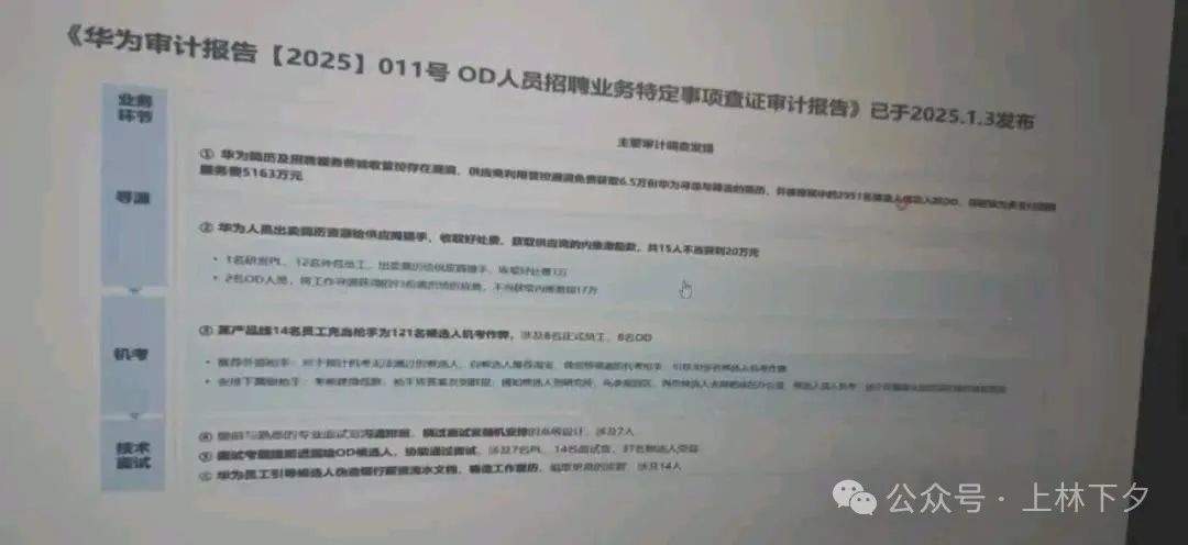 另据经济观察报消息,相关人士透露,早在2024年年中,就有人在社交媒体上举报称,部分华为HR、内部员工和某IT社区博主、外部培训机构组成了一个替考产业链,“花钱就能进华为OD岗”。