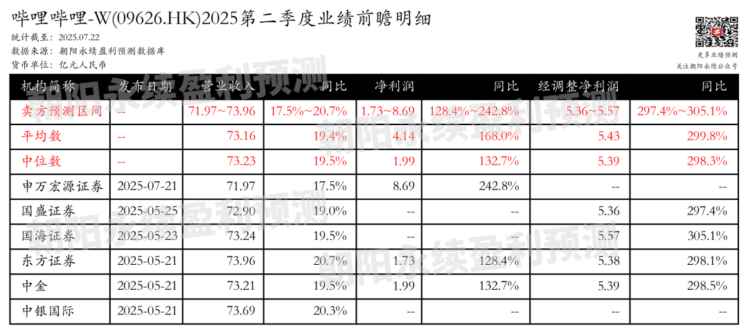 截至2025年07月22日,根据朝阳永续季度业绩前瞻数据: