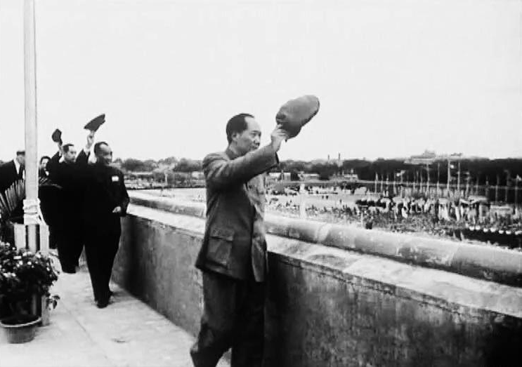 这是1954年10月1日国庆节,北京举行盛大活动庆祝国庆5周年,毛主席率朱老总,周总理等在城楼上挥帽向庆祝游行的队伍致意。这张照片我也是头一次见,从这个角度看过去,广场之上的人那可是真的非常之多,用人山人海来形容一点也不为过!
